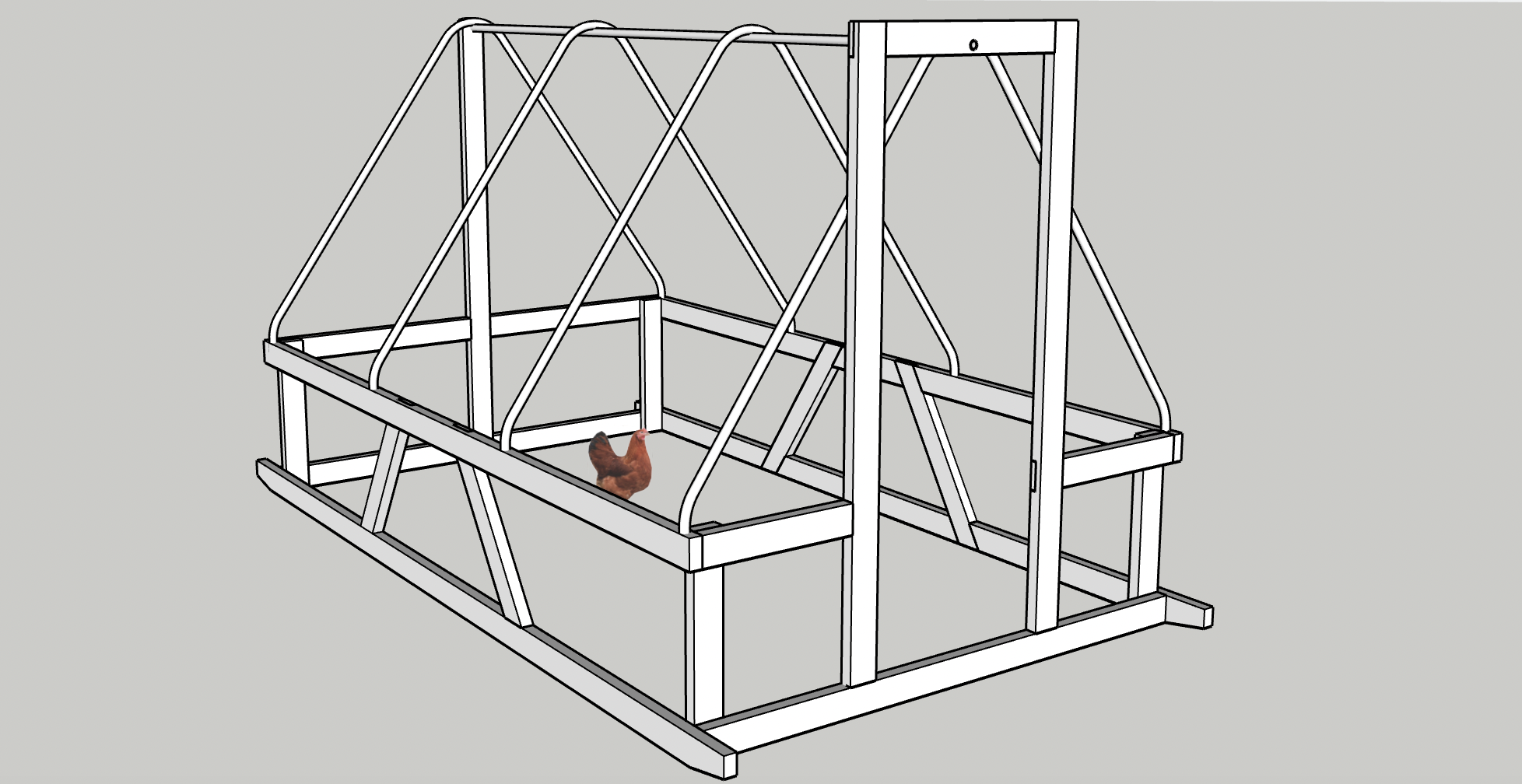 I followed a popular design created by prolific YouTuber and small farmer John Suscovich, who actually sold 10,000 copies of a little handbook to show people how to build them. Of course, I modelled it in SketchUp and tweaked a few details because, well, doesn't everybody? I guess 10,000 people didn't. That's kind of weird.