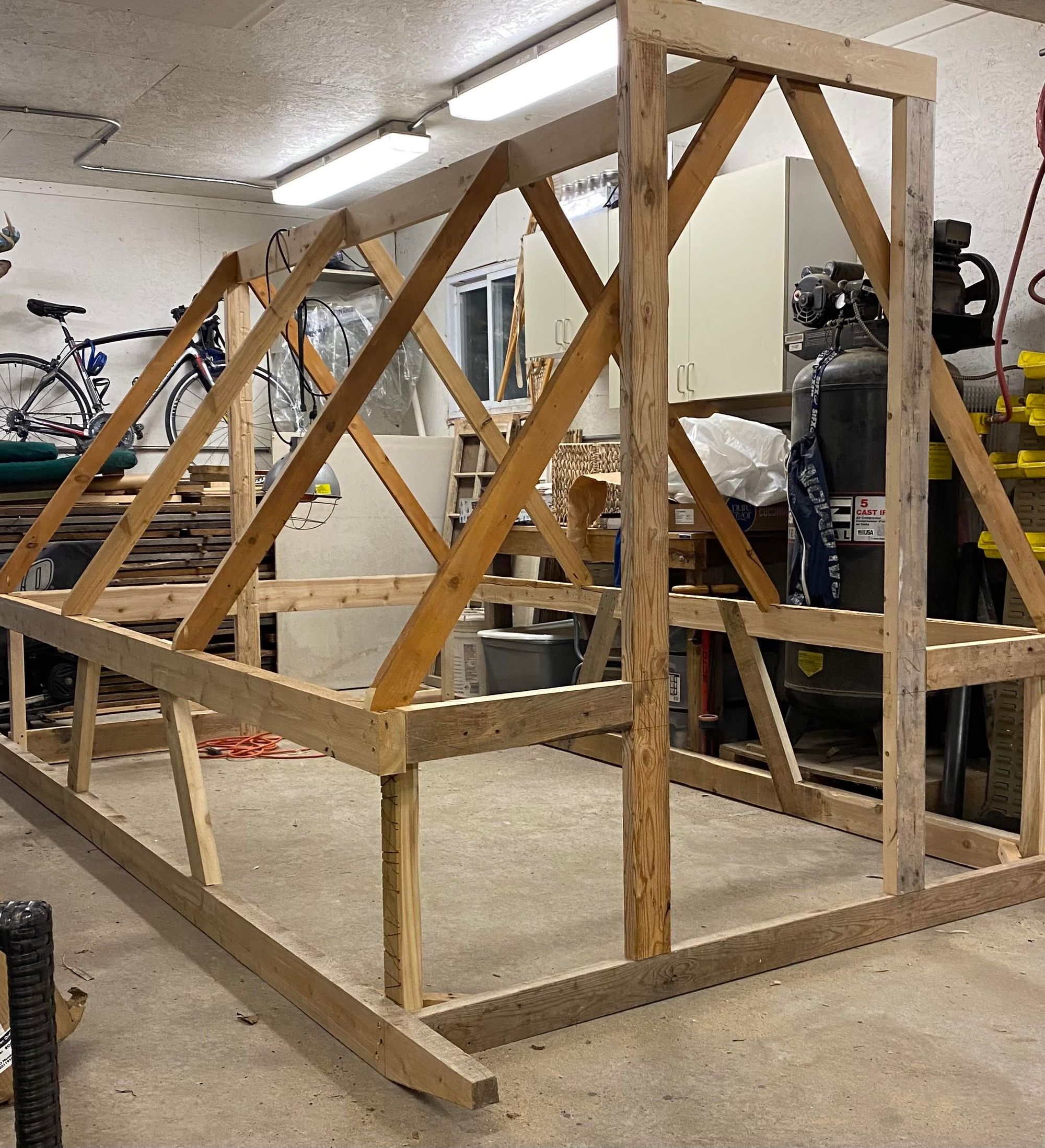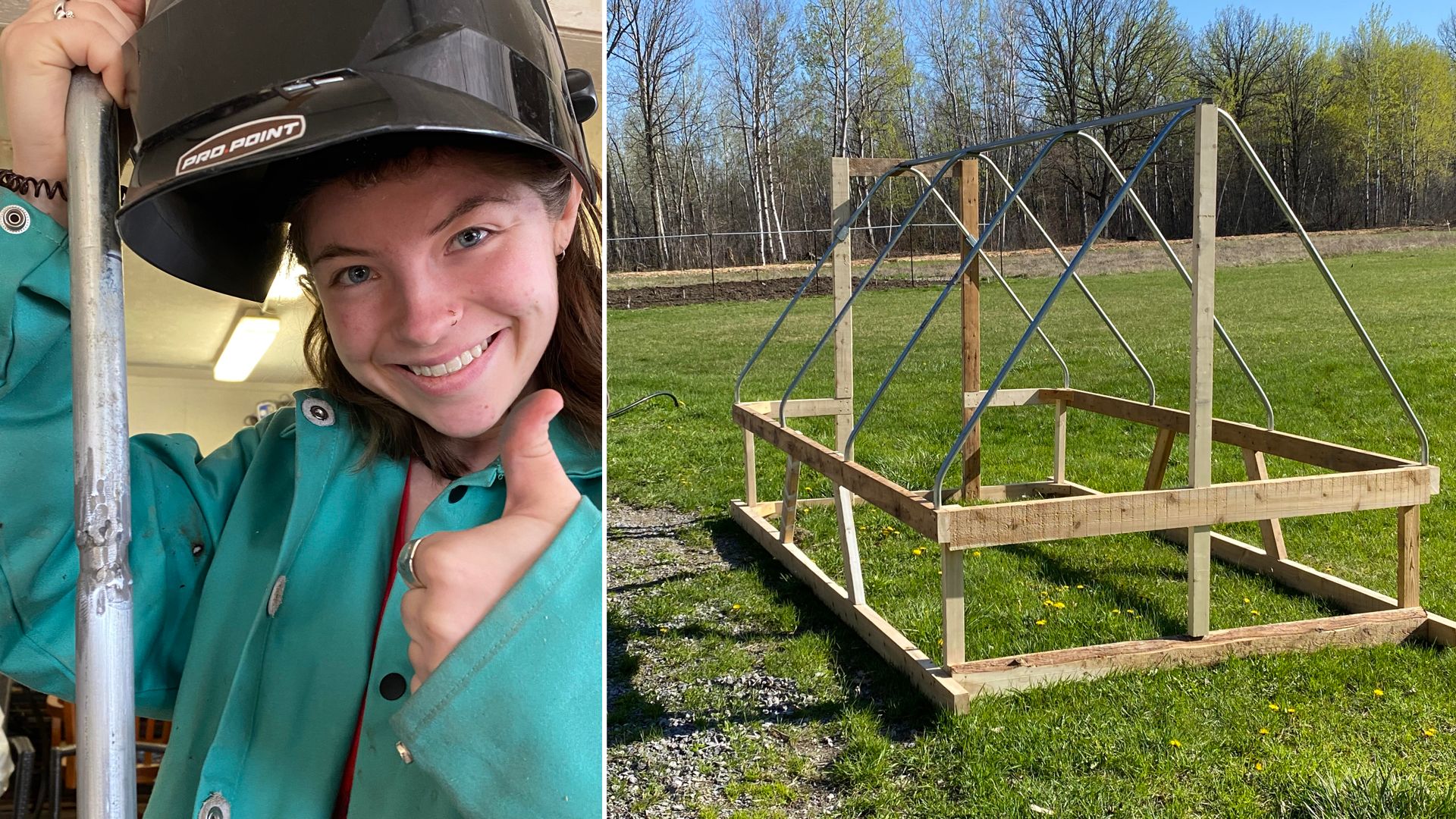 As any small farm must, I have a plethora of building materials hanging around. Wood and parts from building projects, etc. So does my neighbor. Our wives are constantly telling the other to take some of the "junk" we have to the other side of the fence. This design uses 4 lengths of steel conduit tubing. My neighbour had a few laying around. Some were shorter than we needed, but after a bit of welding with my daughter we were in business!